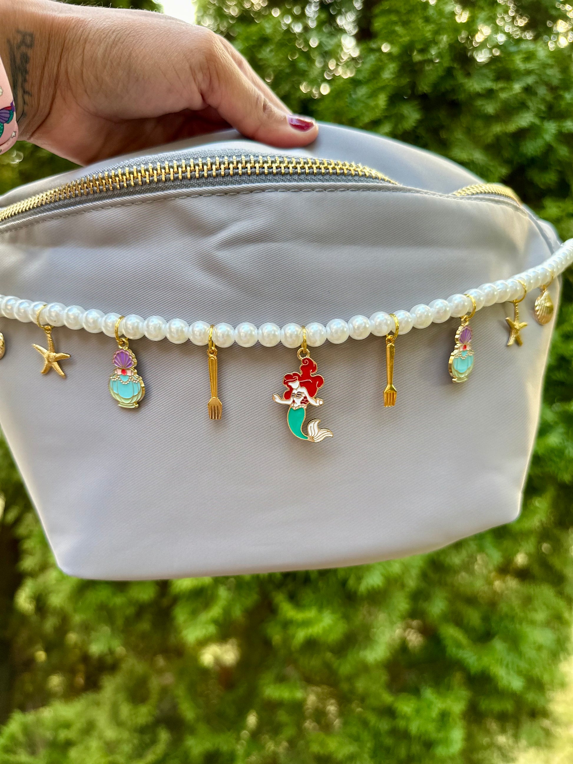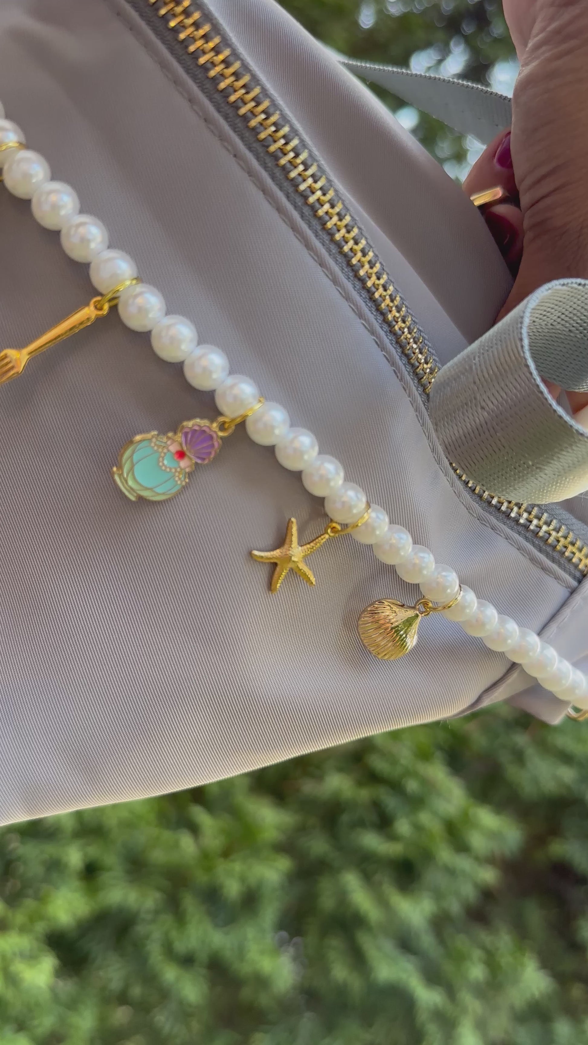 Transform any bag into a magical accessory with this bag chain. This playful and quirky chain is themed after your favorite mermaid, adding a touch of whimsy to your style. Perfect for any mermaid lover or anyone looking to add some charm and personality to their bag.