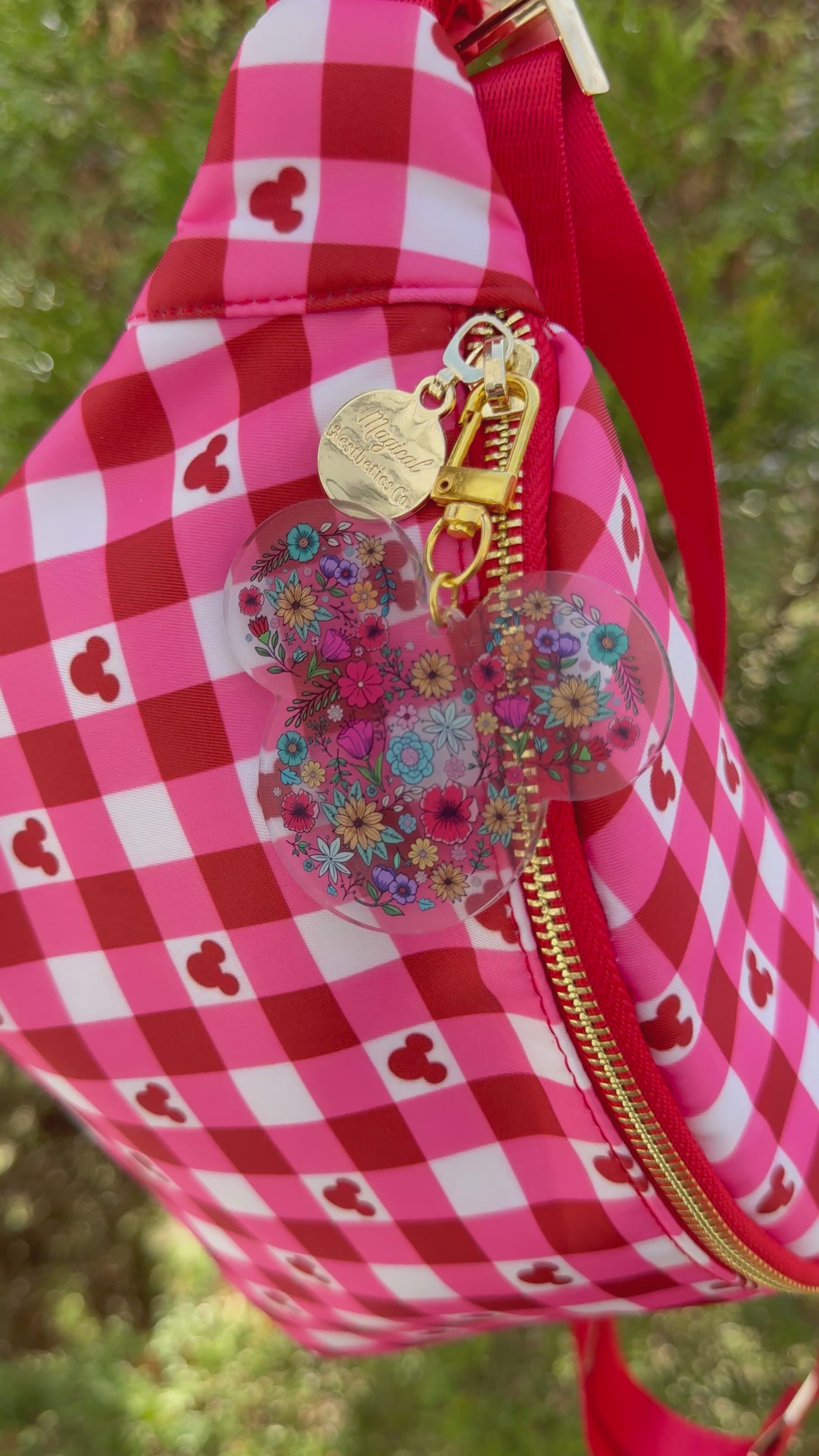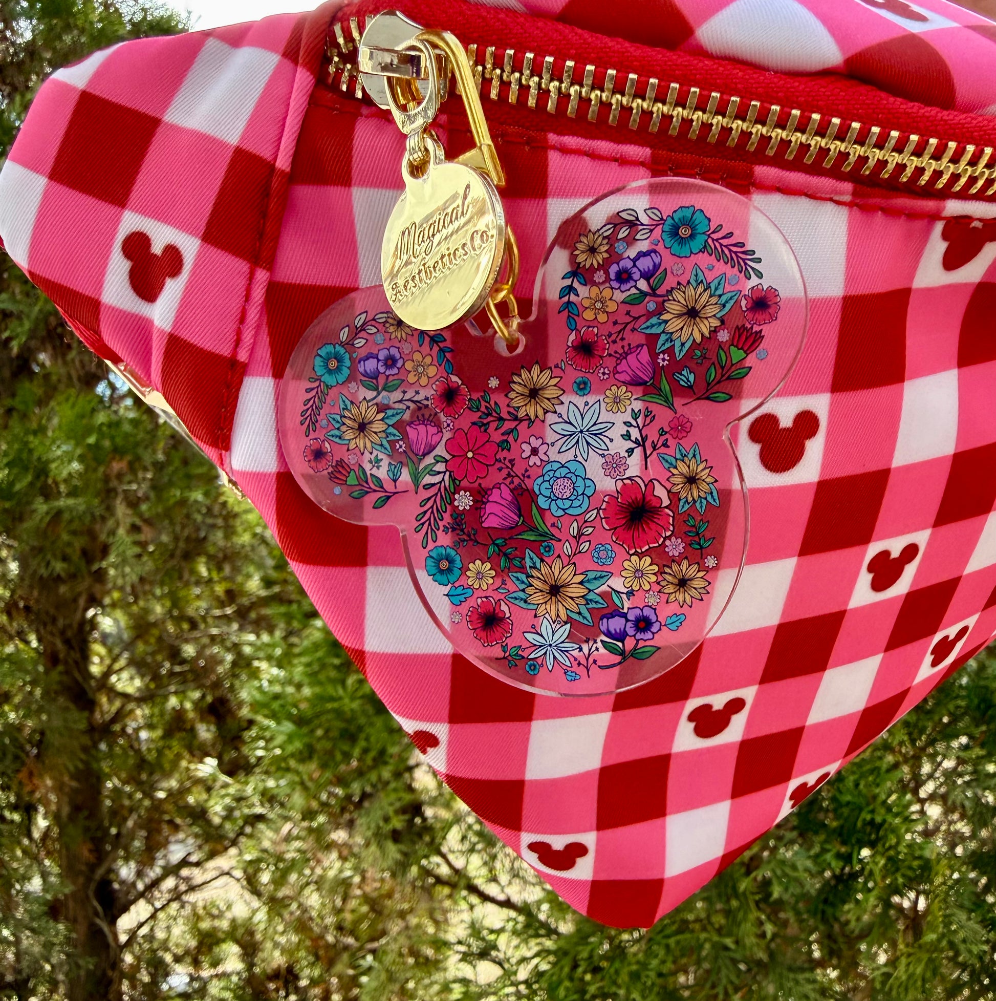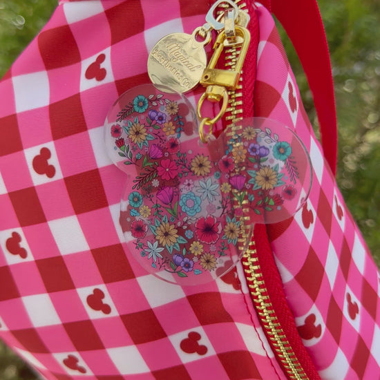 This floral mouse bag charm features a beautiful mouse silhouette filled with colorful blooming flowers, creating the perfect mix of garden-inspired charm and magical style. Designed to add a dreamy touch to park bags, fanny packs, backpacks, and everyday totes, this lightweight acrylic charm is the perfect accessory for anyone who loves florals and a little everyday magic.