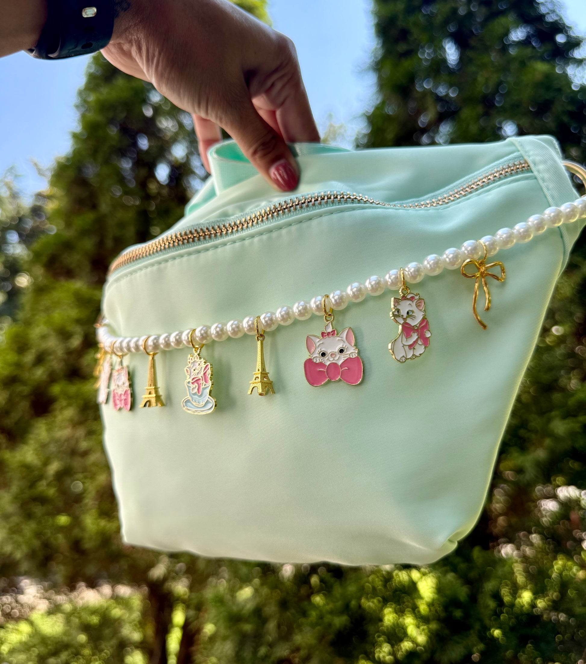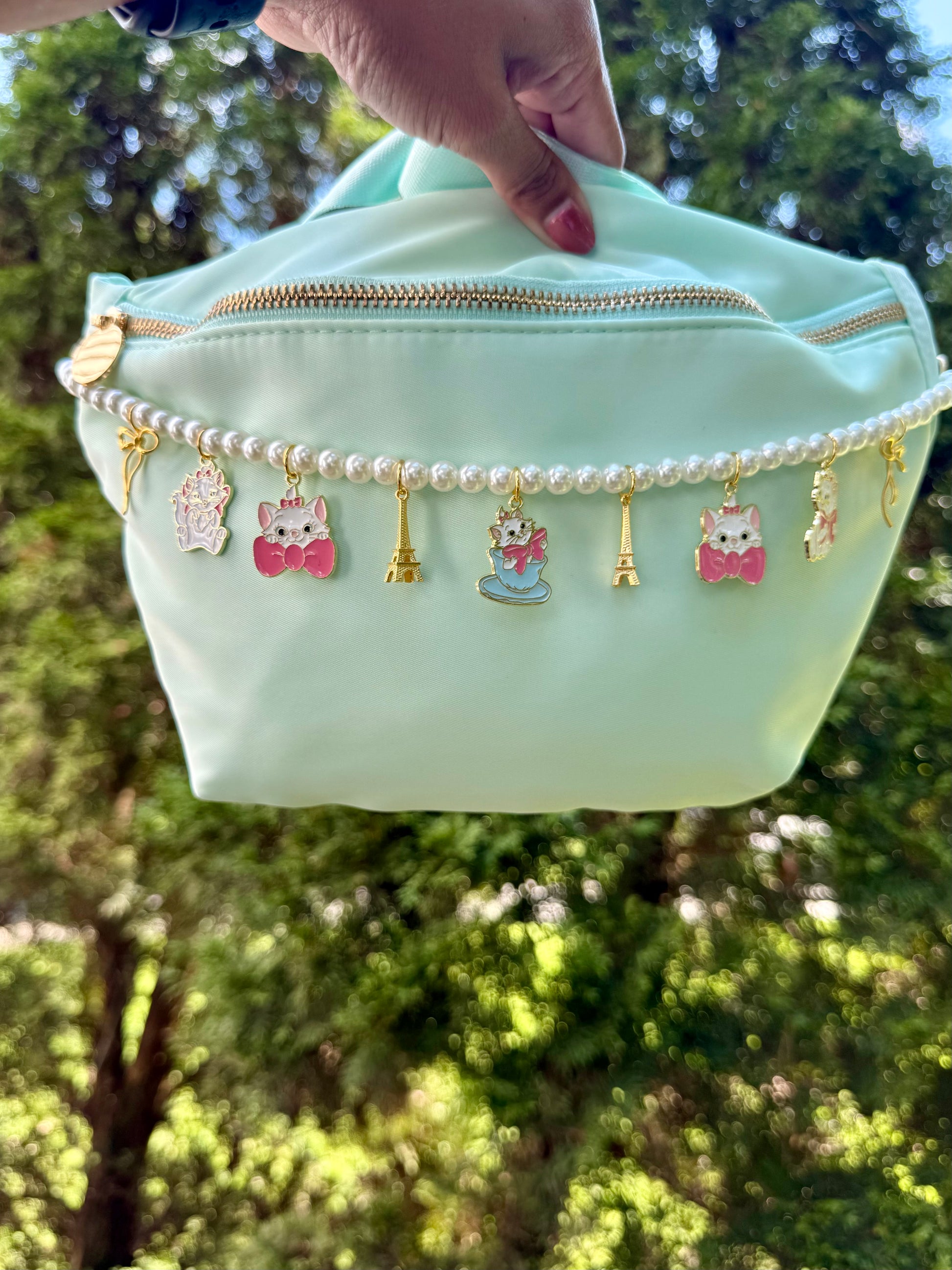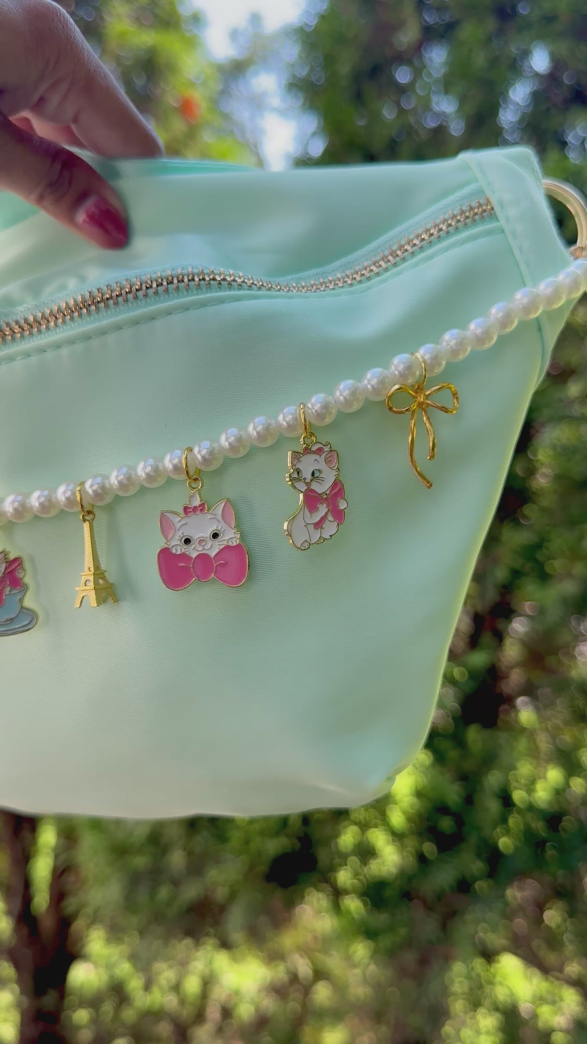 Coquette Kitten Bag chain is a purrfectly dainty accessory for days filled with a touch of French flair. With Marie-inspired charms, Eiffel Towers, bows, and pastel teacups, this chain brings vintage Parisian daydreams to your favorite bag-one pearl at a time.