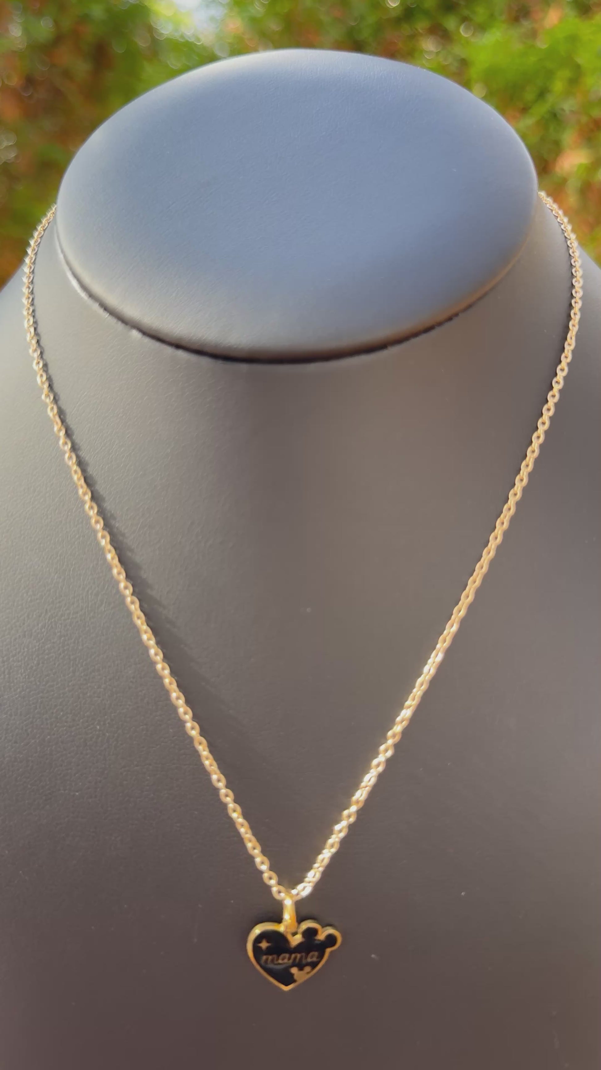 A sweet, subtle way to celebrate motherhood and your love for the parks. This dainty minimalist charm necklace was designed with a magical twist—featuring a tiny heart with a pair of iconic ears on one side as an homage to the magic. In the center, the word “mama” adds the perfect sentimental touch, making this necklace an adorable keepsake for any mom who loves to bring a little pixie magic into her everyday style.
