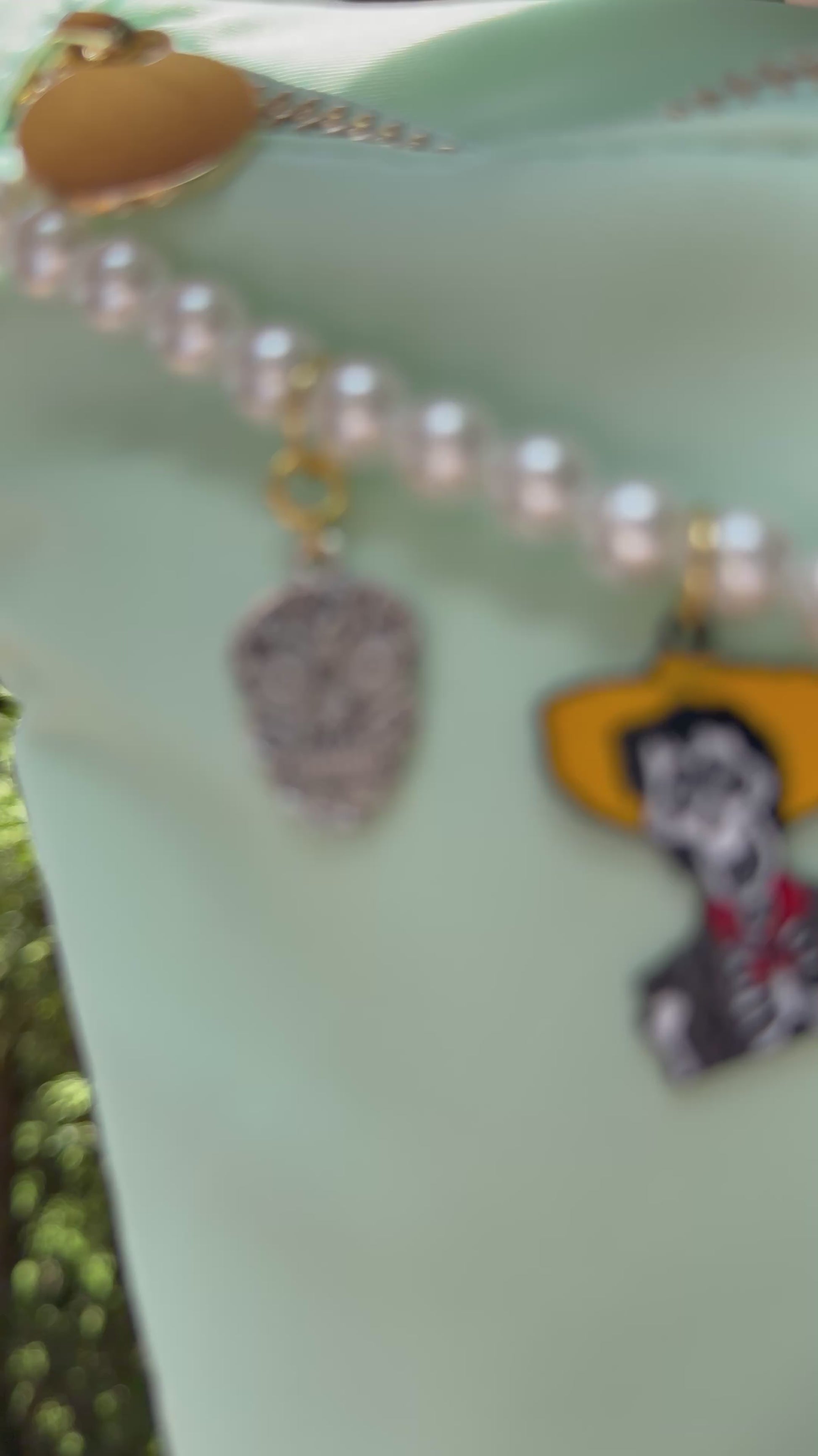 A celebration in every charm—this chain honors love, memory, and música with pearly sweetness and festive spirit.