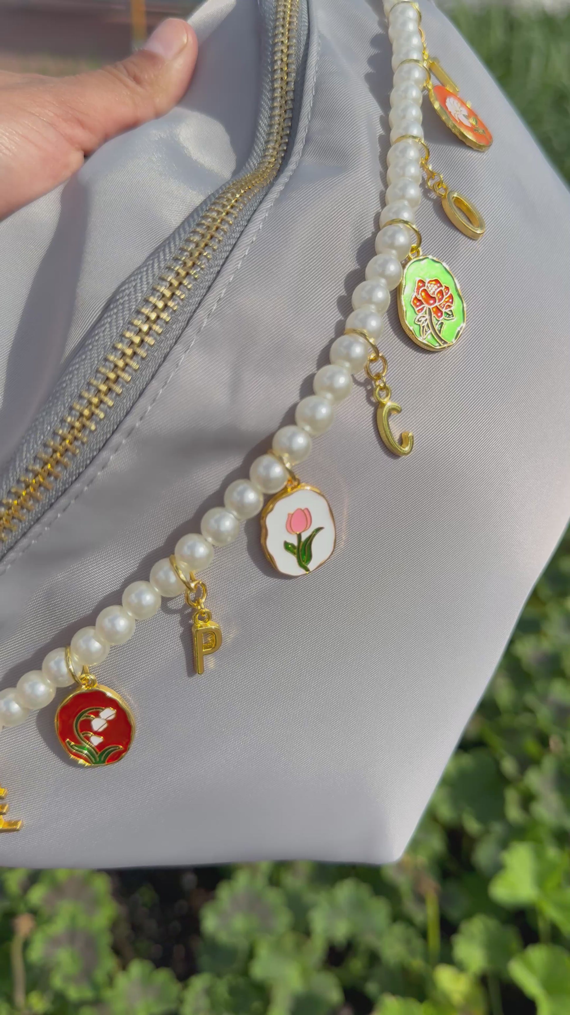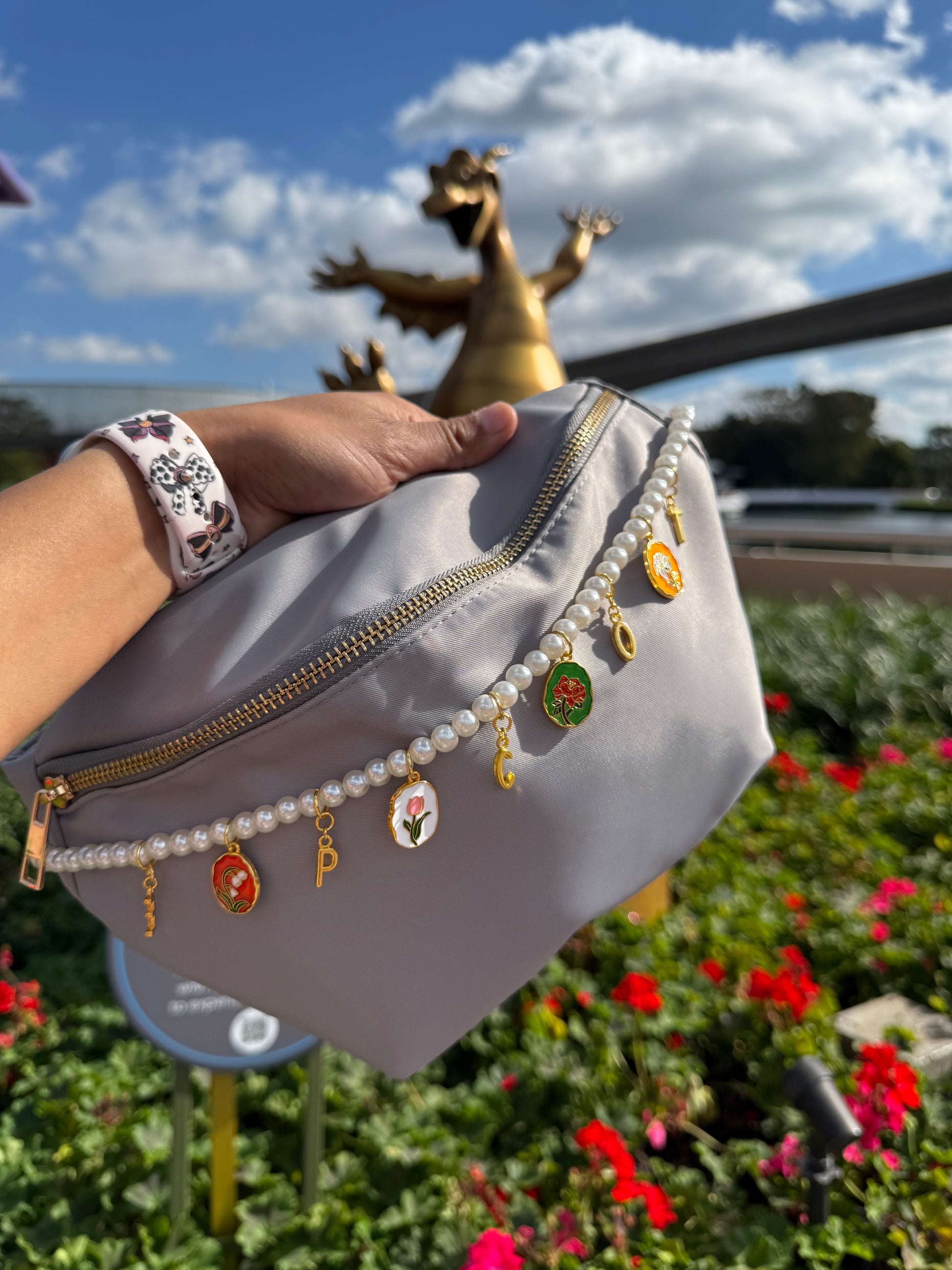 Bag Chain length is 15.75 inches (Fits our large fanny packs as well as most custom fanny packs from other shops). Pearl size is 8 mm.