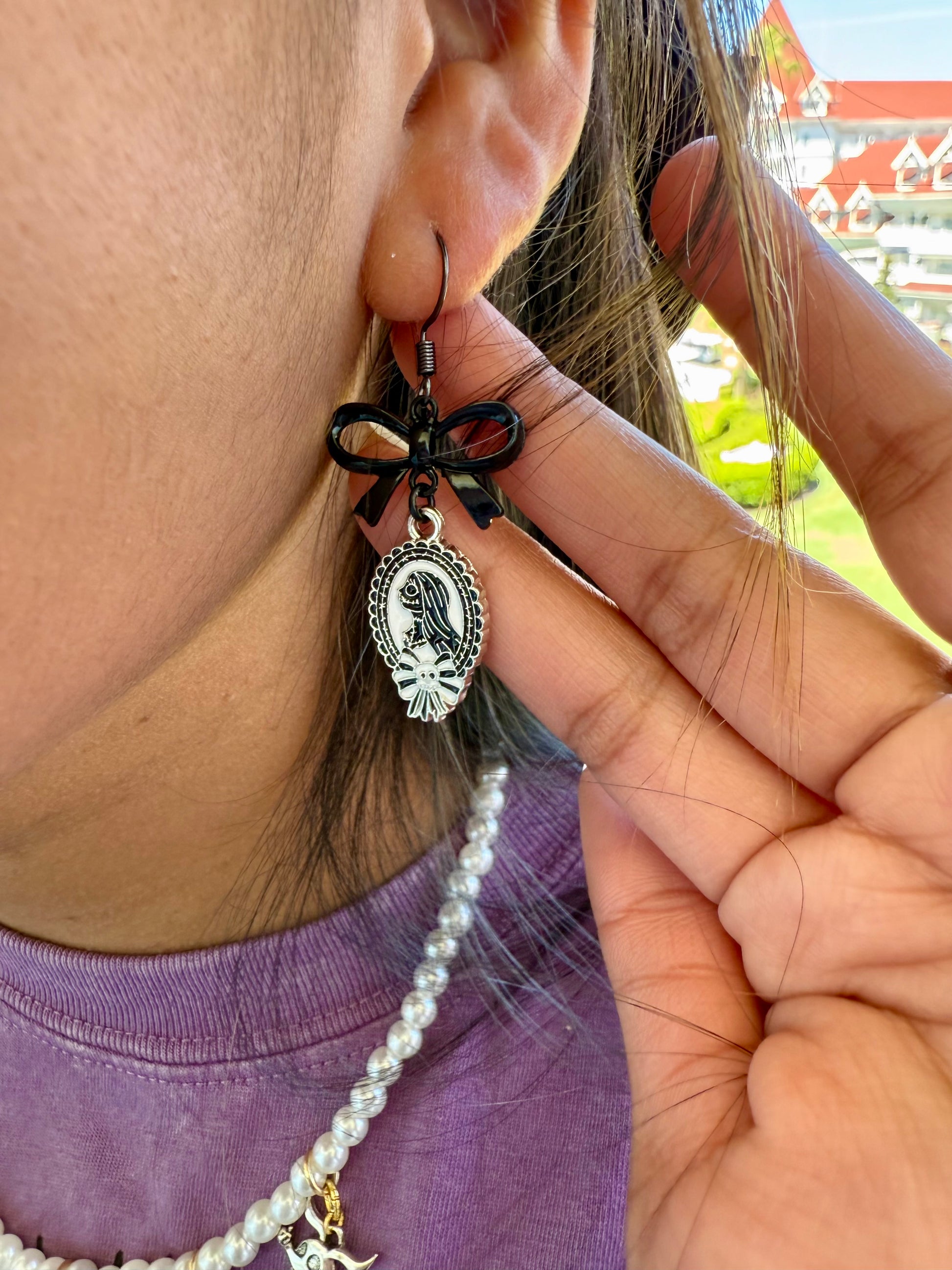 Add some spooky flair to your outfit with these Forever Fright Earrings! Inspired by the iconic love from the Halloween town duo, these earrings are sure to make a statement. Perfect for Halloween or any day you want to show off your quirky style. Boo-tifully crafted and frightfully fun!