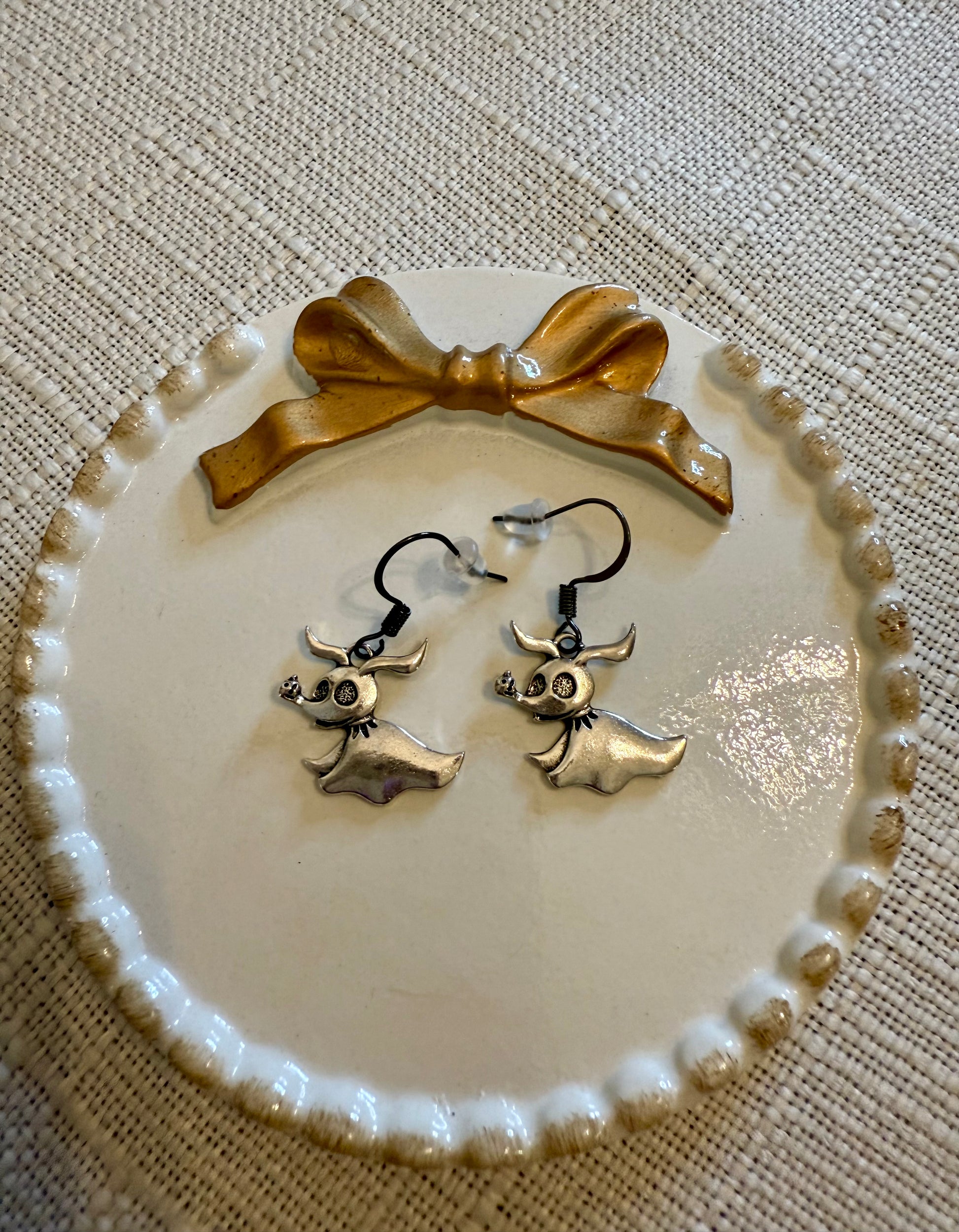 Sweet, spooky, and full of charm — our Ghost Pup dangle earrings are the perfect way to celebrate the softer side of Halloween. Inspired by a certain loyal ghostly companion, these earrings feature a floating pup silhouette with a tiny pumpkin nose detail. Lightweight and eye-catching, they add a playful haunt to your everyday look or complete your spooky-season outfit with ghostly grace.