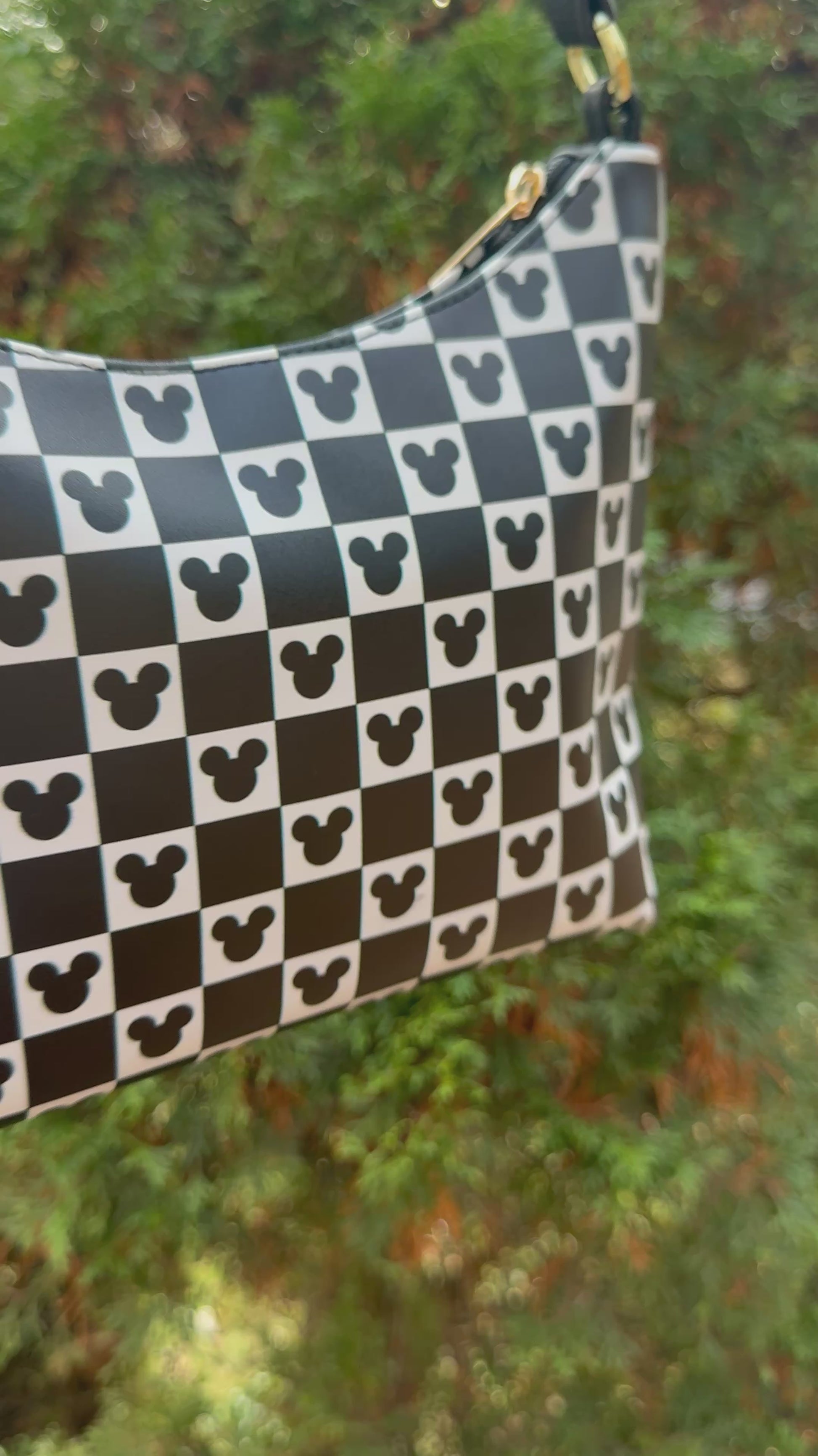 The Magical Checkerboard Bag is your new monochrome essential. This chic shoulder bag features a bold black-and-white checkerboard pattern with subtle ear silhouettes for the perfect touch of park magic. Made from smooth, durable PU leather with gold-tone hardware, it’s lightweight, stylish, and sized just right for everyday wear or park adventures.