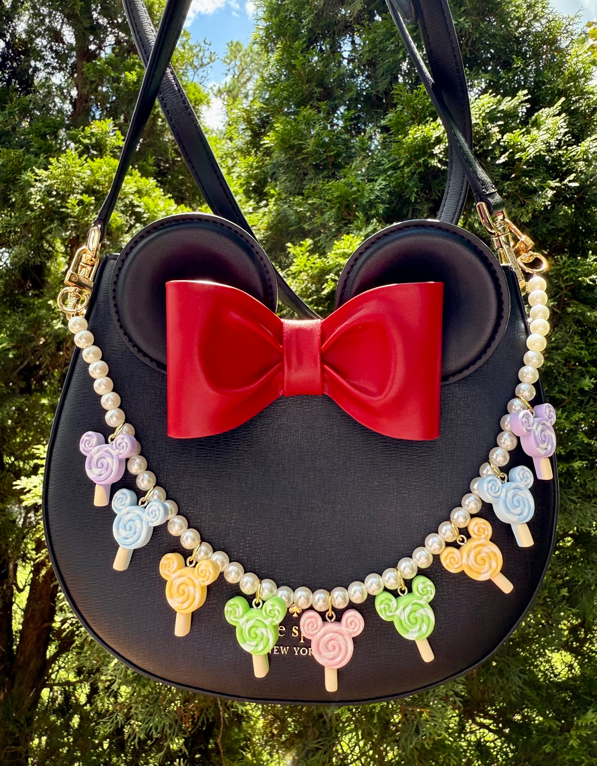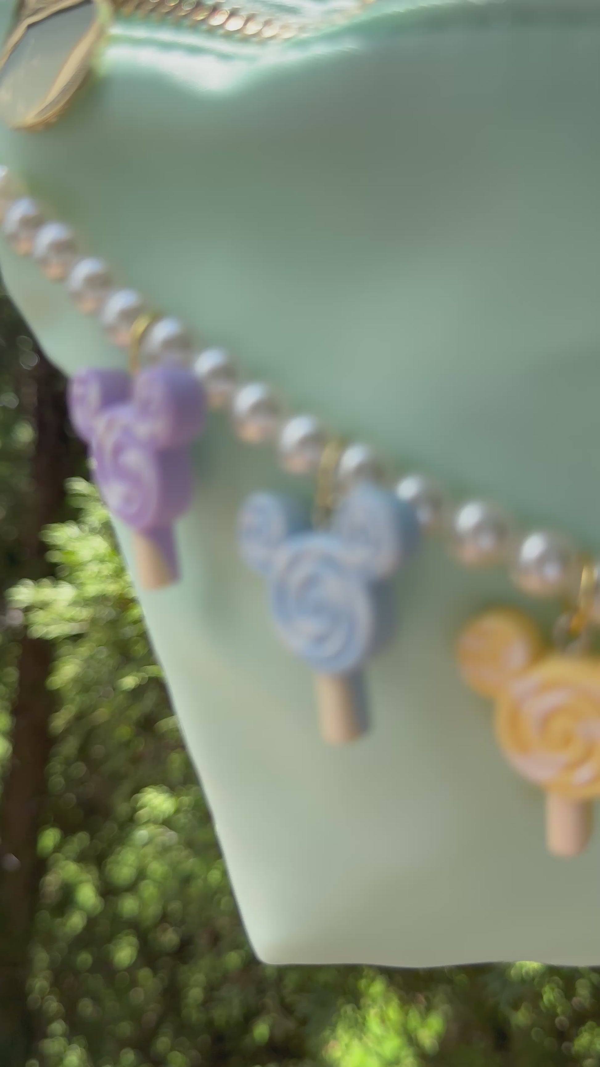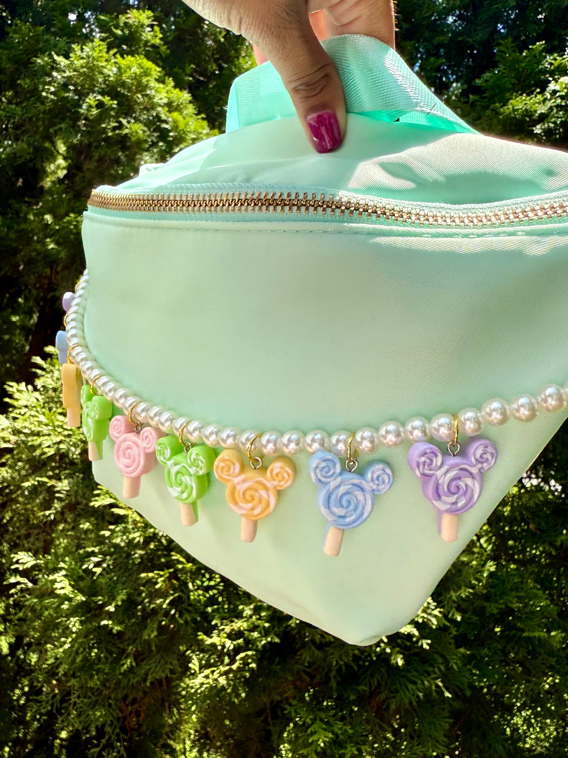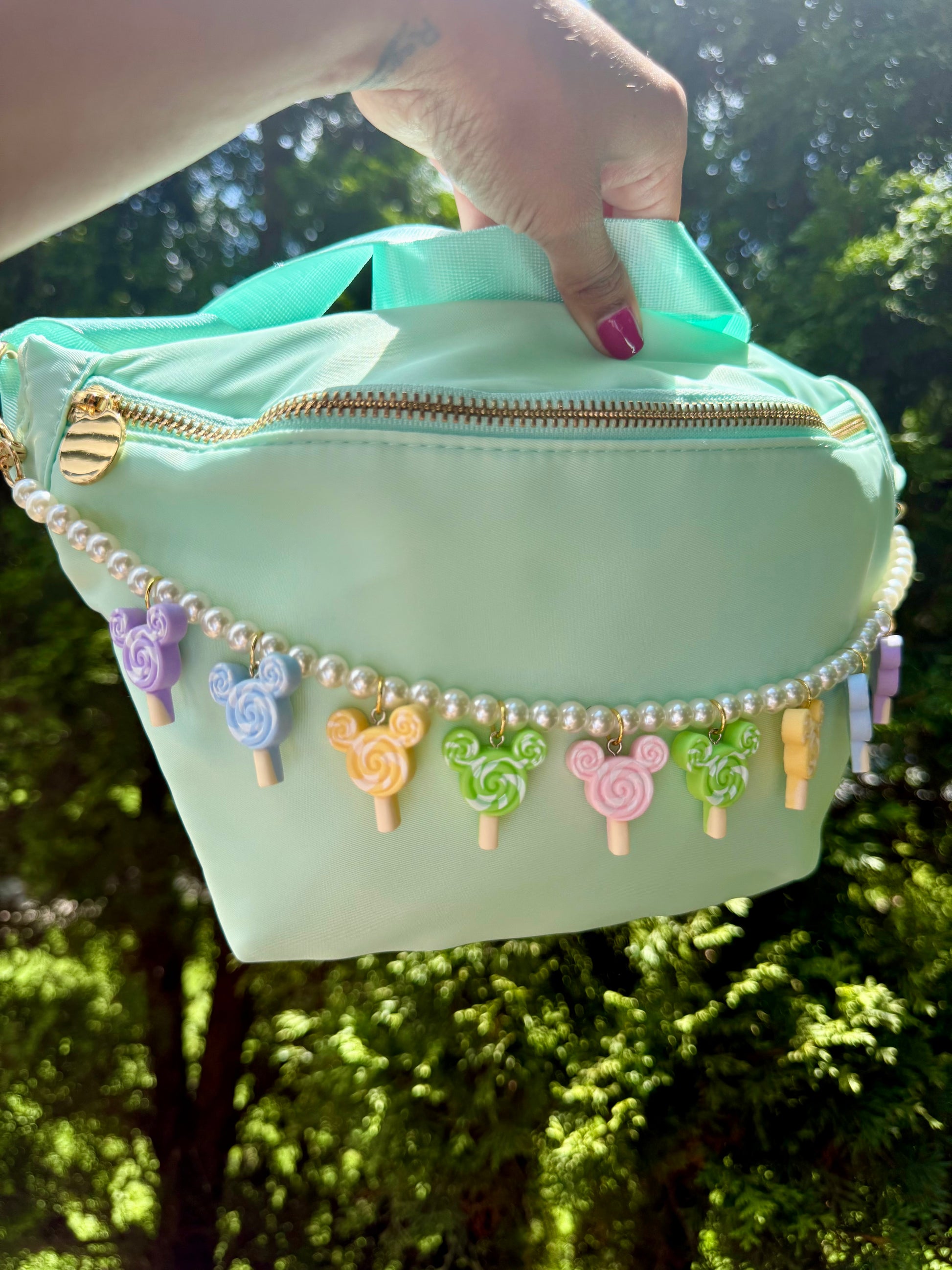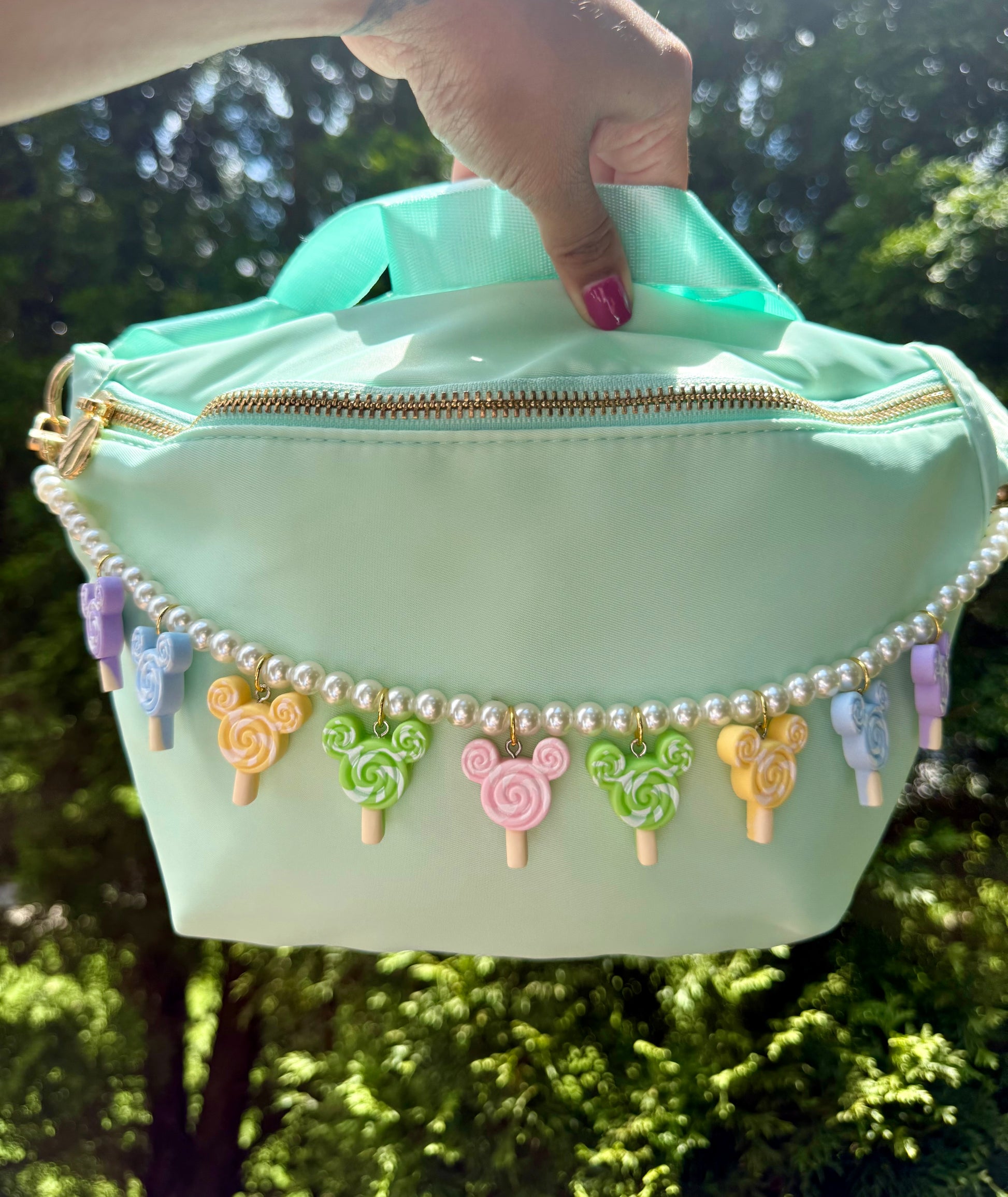Add a sweet pop of color and fun to your bag with the Magic Pop Bag Chain. Featuring a swirl of pastel pops and pearly accents, this accessory is the accessory to make your park day bag stand out!