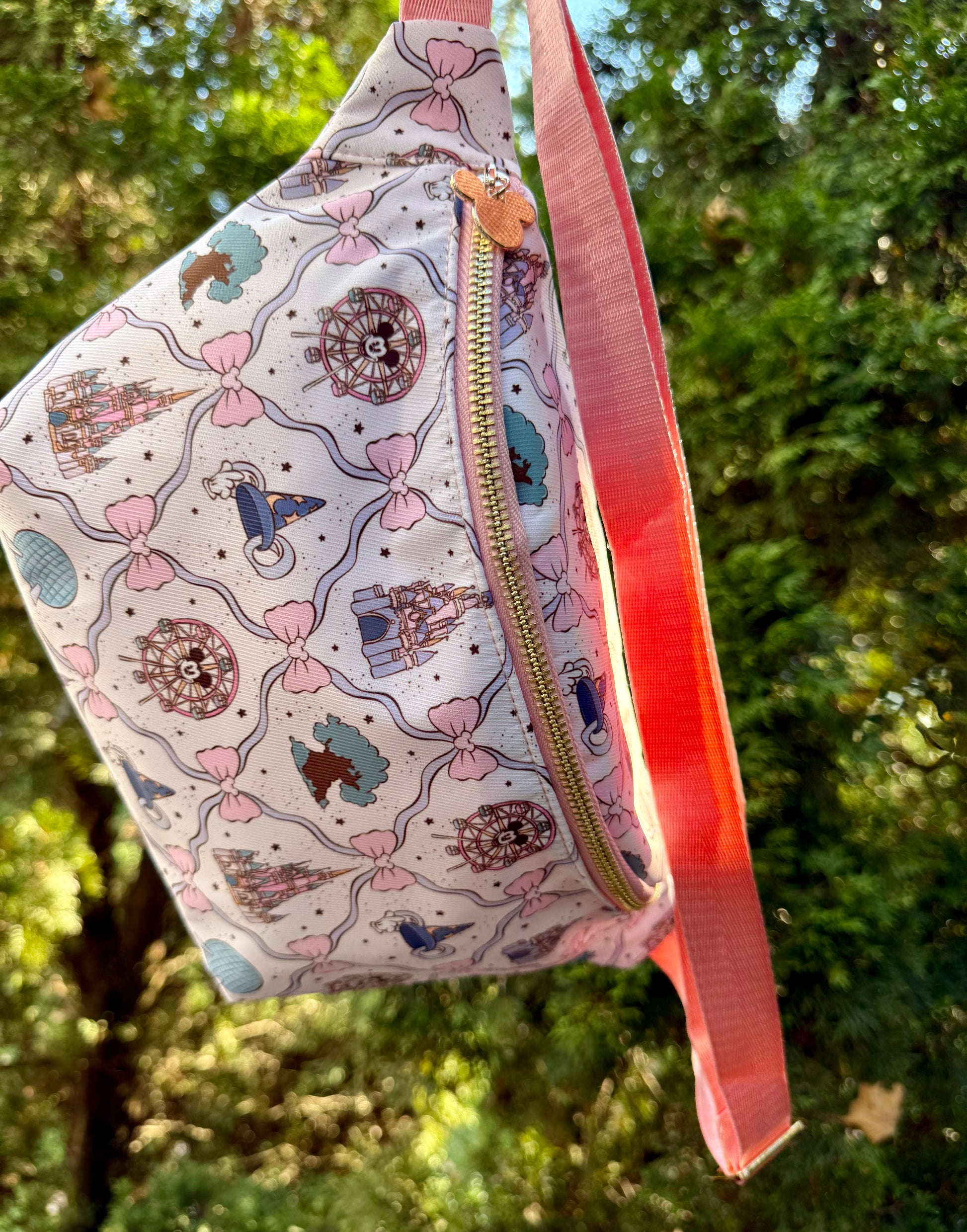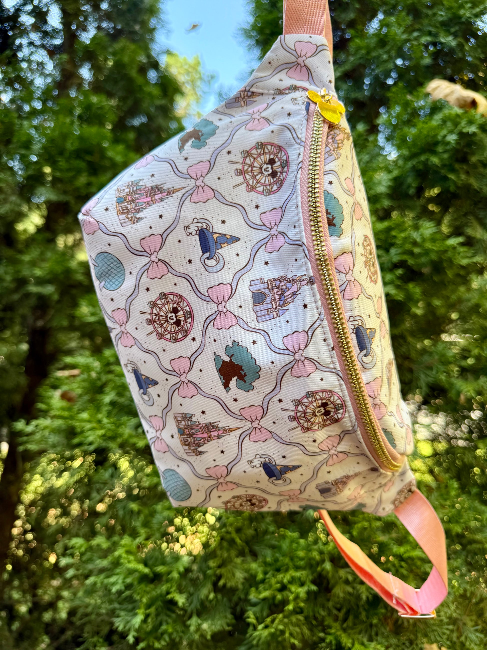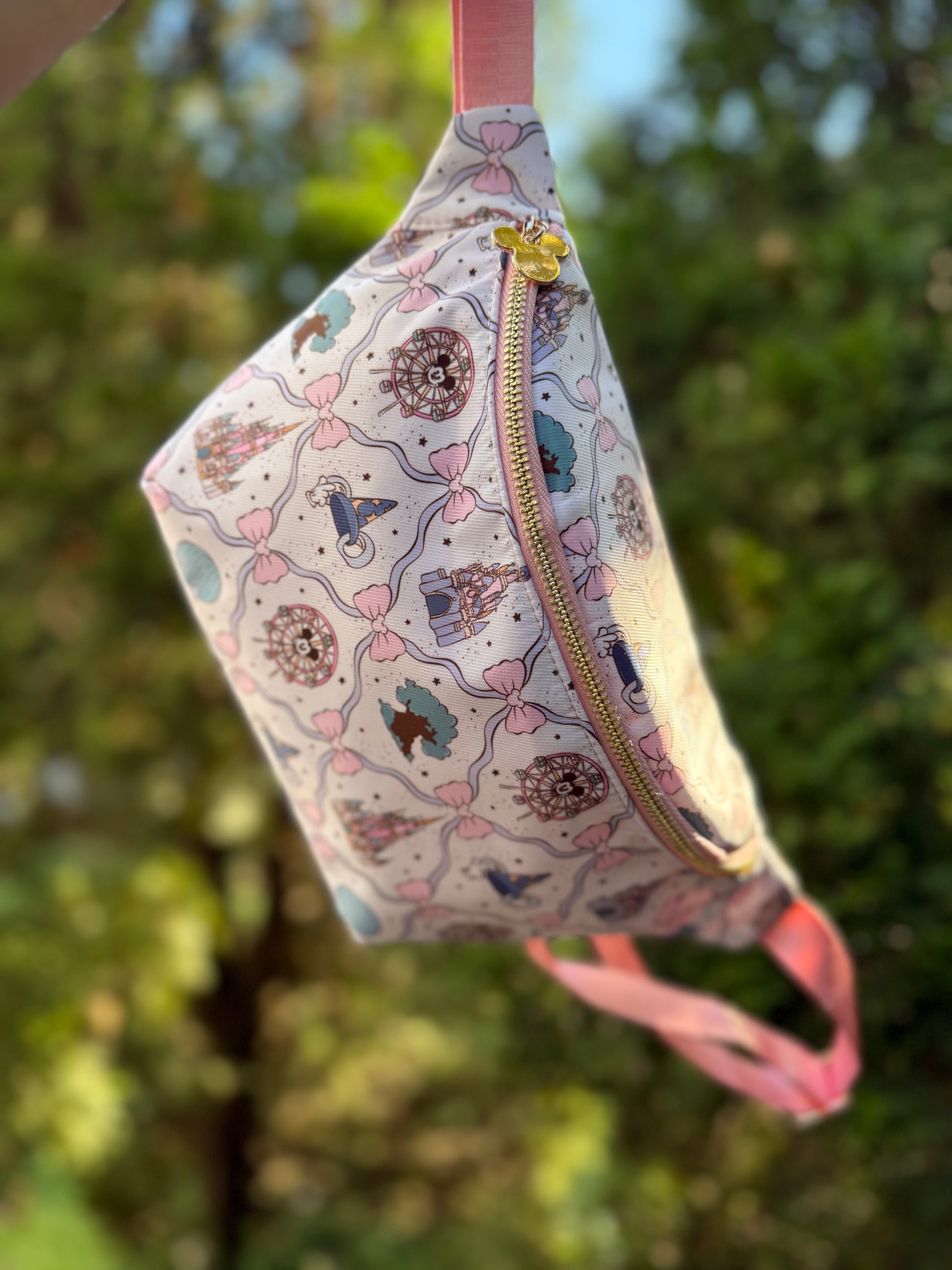 Head to the park with our EXCLUSIVE shop pattern! Our Parkbound Icons fanny/belt bag sprinkles pixie dust into every adventure with dreamy coquette bows, whimsical park icons, and pixie dust practicality —all wrapped up in pastel magic✨