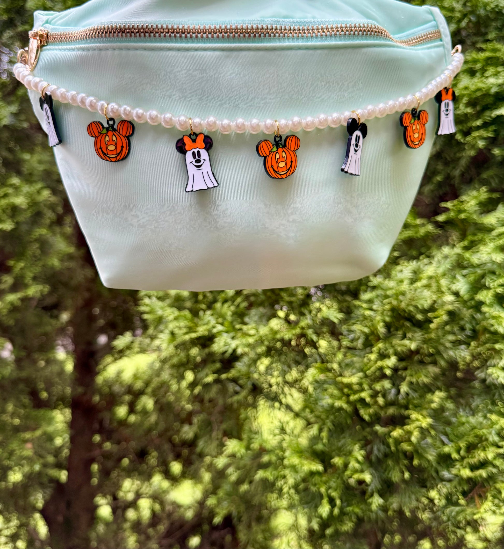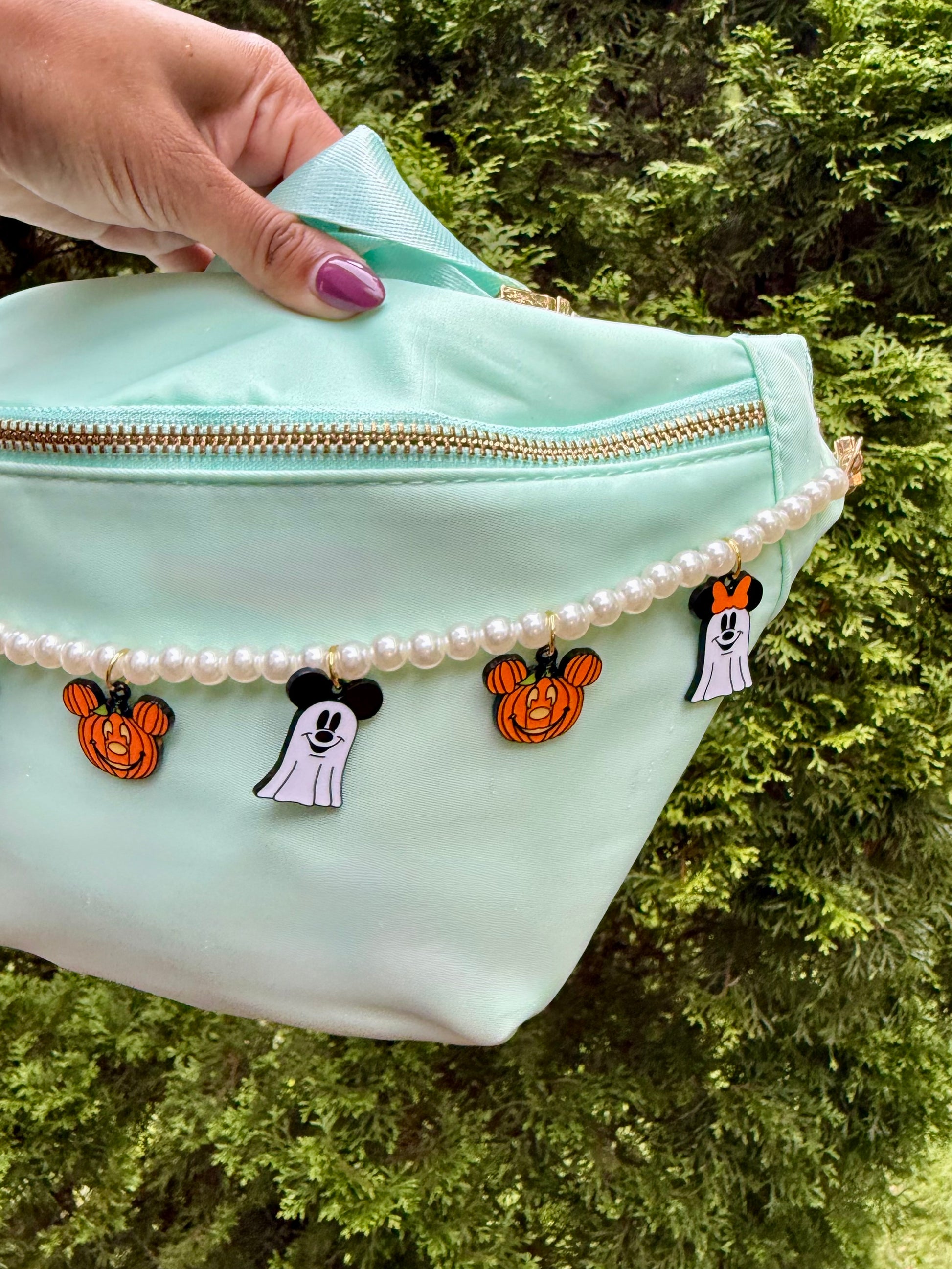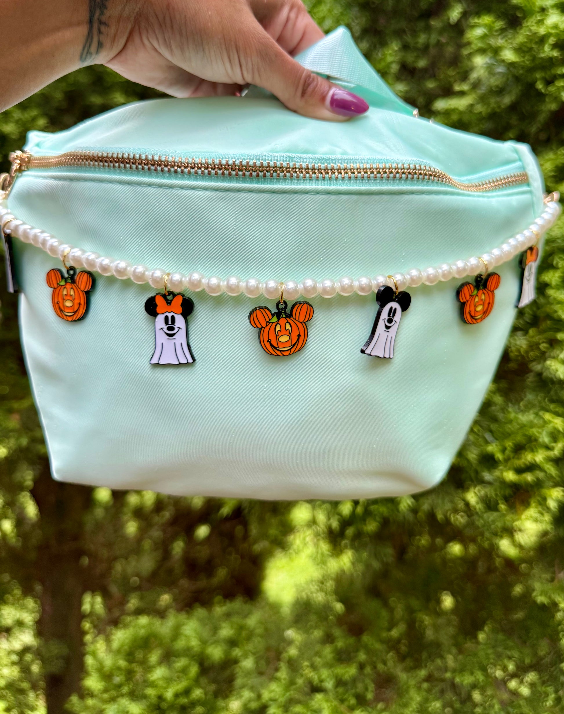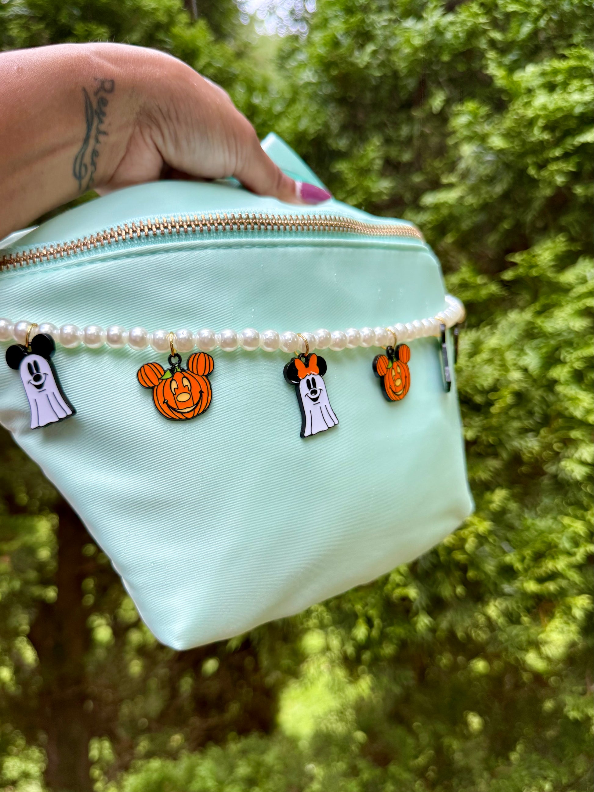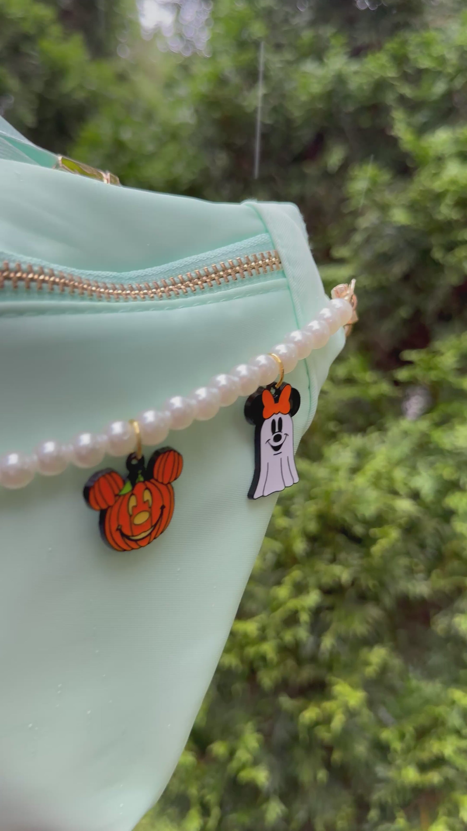 Add a playful pop of Halloween magic to your bag with this adorable mouse-inspired ghost and pumpkin chain! Featuring spooky-sweet ghost charms with signature mouse ears this chain brings the cutest touch of haunted whimsy to your look. Clip it on and get ready to turn heads — it’s spooky season done right!