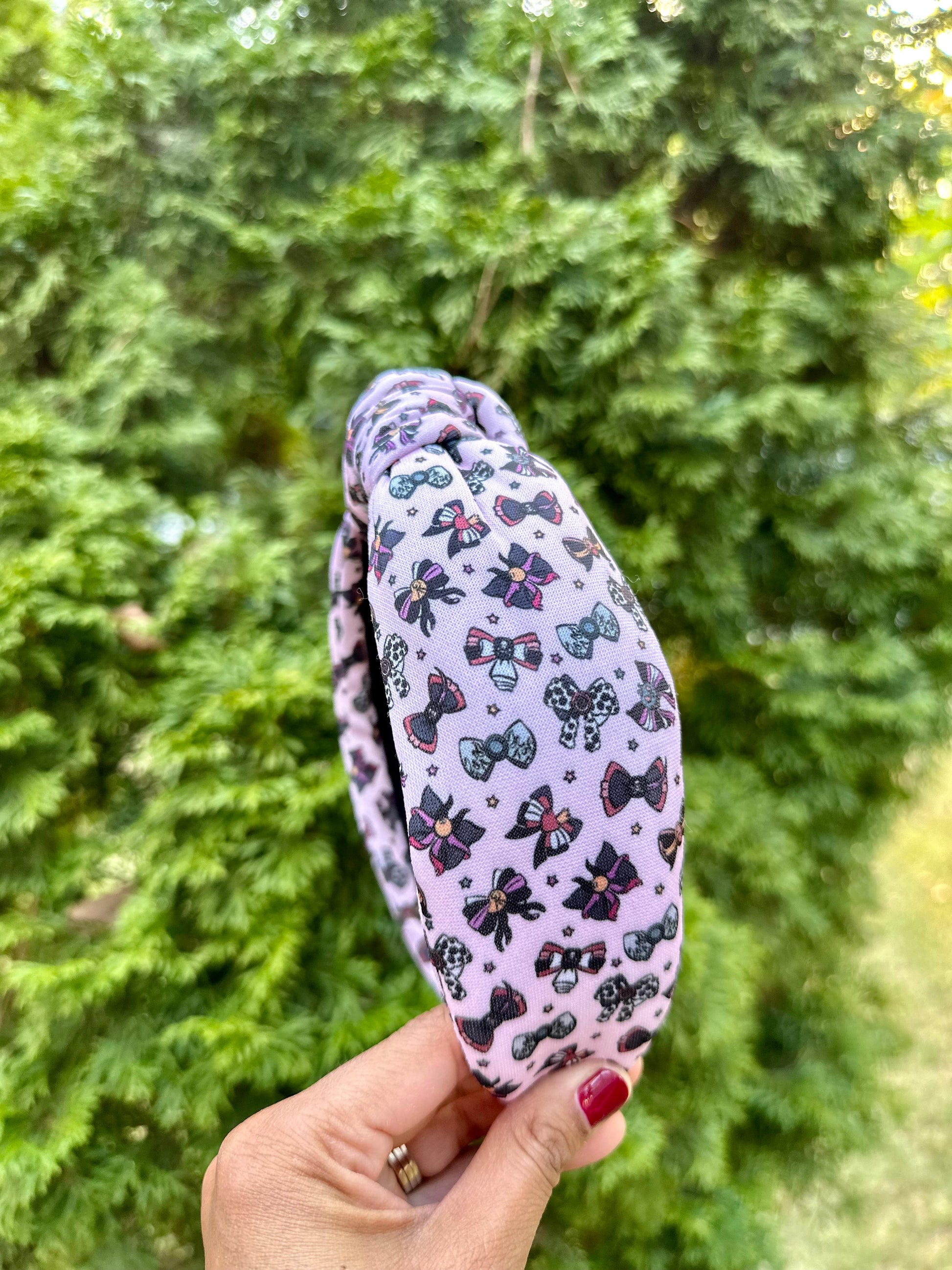 Unleash your inner villain with our Villainous Bows Headband! This headband features an eye-catching bow pattern inspired by infamous villains.Prepare to turn heads and plot your next wicked scheme!